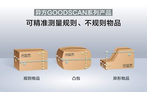 Goodscan系列体积测量设备,采用了先进的3D视觉+光幕测量技术,可测量规则箱体、凸包、软包、超薄等货物,精度可达±1mm,实现货物信息精准采集与管理。