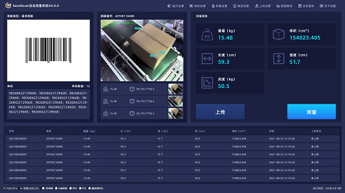 异方科技GS210P皮带式体积测量一体机投放使用后,只需要将货物放至测量区域,即可快速识别货物条码,精准采集尺寸、体积和重量等信息,自动将数据同步至客户管理系统,实现货物信息的高效管理。