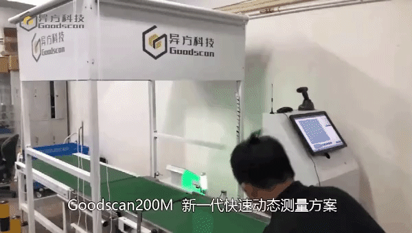 以Goodscan体积测量一体机为例,采用当下主流的3D视觉和光幕测量技术,配合独家的测量算法,可精准测量规则/非规则货物的尺寸、体积、重量和条码等信息,精度可达±1mm,效率可达3000件/小时。